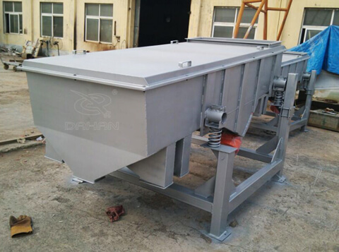 兩電機(jī)軸相對篩面在垂直方向有一傾角,在激振力和物料自重力的合力作用下,物料在篩面上被拋起跳躍或向前作直線運(yùn)動,從而達(dá)到對物料進(jìn)行篩選和分級的目的。適用于粒度在0.074—5mm,含水量小于7%,無粘性的各種干式粉狀或顆粒狀物料的篩分。大給料粒度不大于10mm.