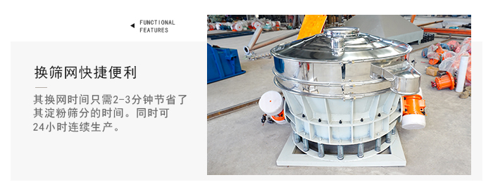 直排篩利用獨(dú)特:電動偏心軸的振動原理,使其能夠?qū)崿F(xiàn)多層震動篩同時篩分的作用,從而可以提高了其篩分的精細(xì)度。同時其可24小時連續(xù)生產(chǎn),獨(dú)特的換篩網(wǎng)快捷便利:其換網(wǎng)時間只需2-3分鐘節(jié)省了其淀粉篩分的時間。所以其價格是可以選擇的。