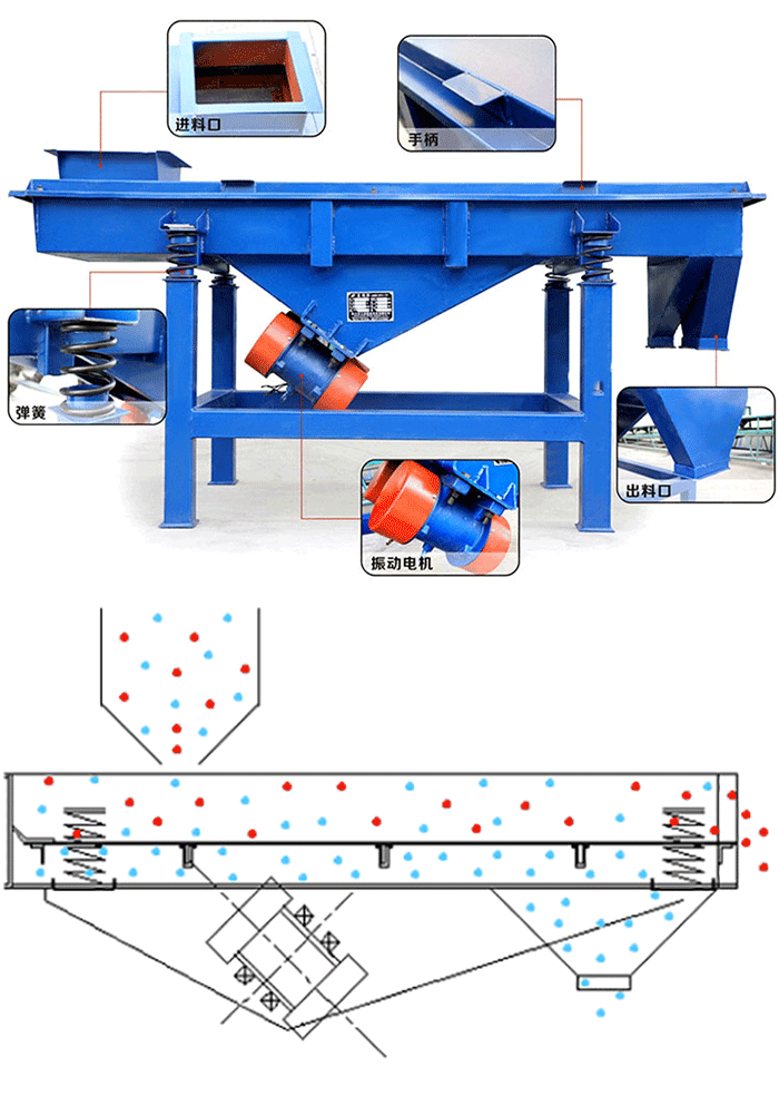 直線振動(dòng)篩是雙振動(dòng)電機(jī)驅(qū)動(dòng),當(dāng)兩臺(tái)振動(dòng)電機(jī)做同步、反向旋轉(zhuǎn)時(shí)使用振動(dòng)篩需要注意哪些細(xì)節(jié)呢?看這兒,其偏心塊所產(chǎn)生的激振力在平行于電機(jī)軸線的方向相互抵消,在垂直于電機(jī)軸的方向疊為一合力,因此直線篩的運(yùn)行軌跡為一直線。兩電機(jī)軸相對(duì)篩面有一傾角,在激振力和物料自重力的合力作用下,物料在篩面上被拋起跳躍式向前作直線運(yùn)動(dòng),從而達(dá)到對(duì)物料進(jìn)行篩選和分級(jí)的目的。