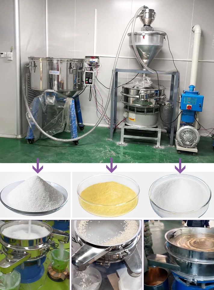 藥粉在篩分過程中,普遍存在纖維過多、粘度高、靜電、比重輕等問題,會導(dǎo)致篩分吞吐量小,連續(xù)工作弱,清洗不便,生產(chǎn)效率低,增加藥量振動篩。采用超聲波脫盲系統(tǒng),有效解決了上述問題,減少了堵網(wǎng)現(xiàn)象。對于比重輕、吸附性好的物料,可以提高生產(chǎn)效率,提高篩分精度,大大降低勞動強度,減少成品物料的浪費。
