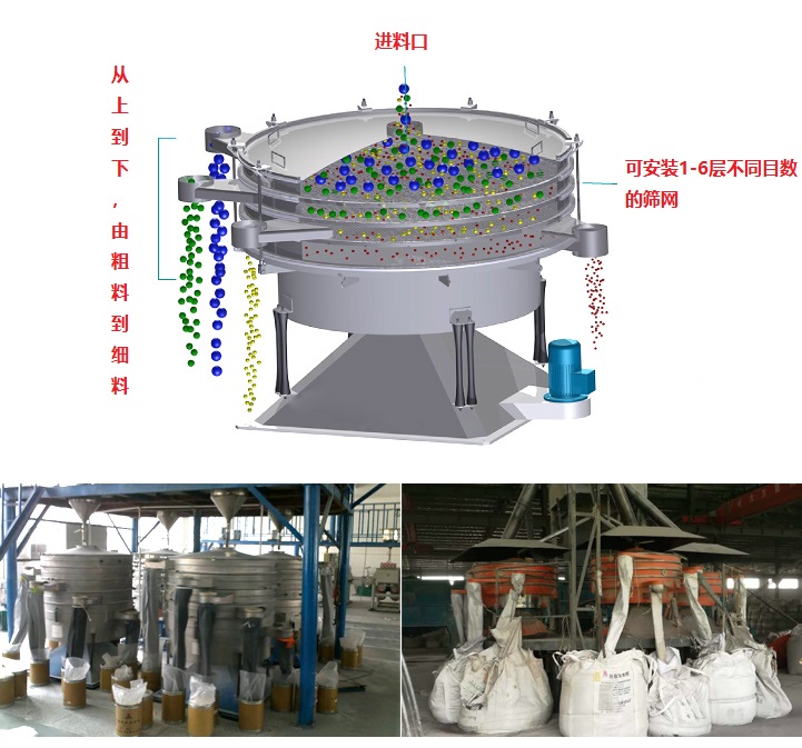 圓形搖擺篩采用仿人工篩分原理,用于準(zhǔn)確分離1-6級(jí)粉粒,通常用于干燥、粉狀、顆粒狀產(chǎn)品的篩分、分級(jí)和除塵,特別適用于細(xì)、脆、輕等難于篩分的產(chǎn)品。