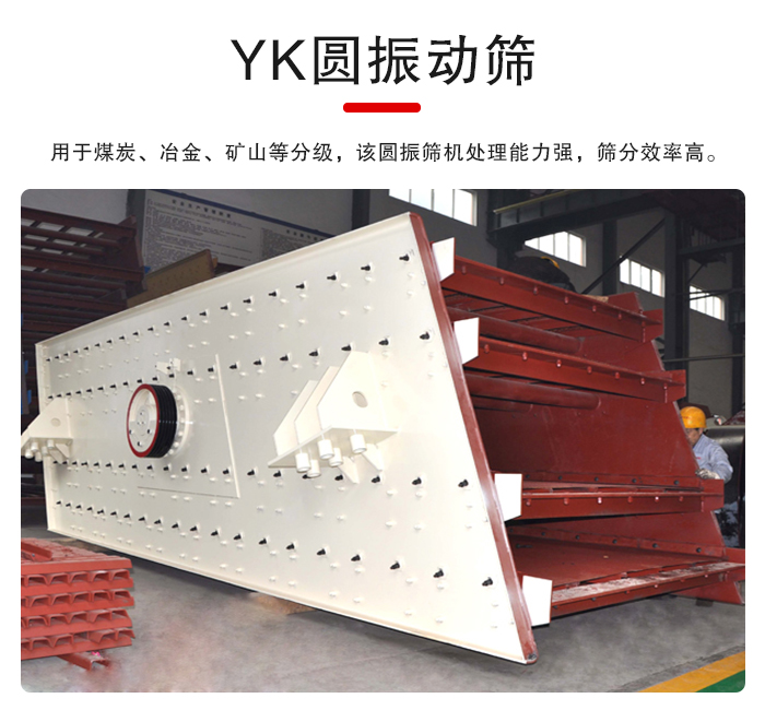 YK圓振動篩是固體物理分級的重要設備篩分效果好,被應用在許多行業(yè),如礦山、建材、能源、選煤、交通、能源、化工等行業(yè)的產(chǎn)品分級,