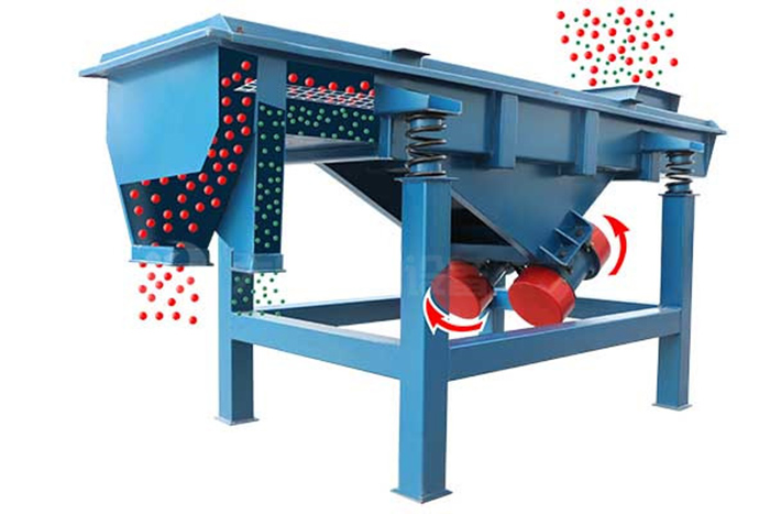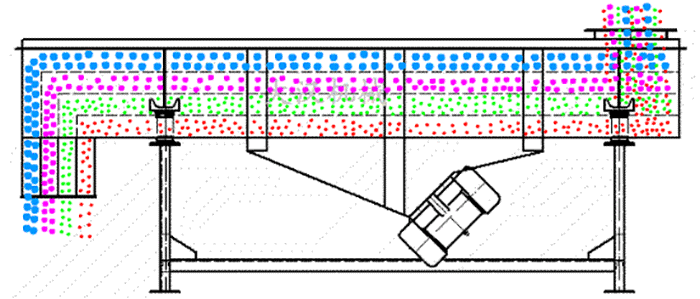 直線型振動(dòng)篩兩電機(jī)軸相對(duì)篩面有一傾角,在激振力和物料自重力的合力作用下,物料在篩面上被拋起跳躍式向前作直線運(yùn)動(dòng),從而 達(dá)到對(duì)物料進(jìn)行篩選和分級(jí)的目的??捎糜诹魉€中實(shí)現(xiàn)自動(dòng)化作業(yè)。