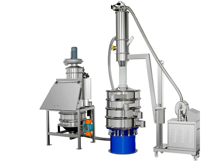 無塵投料站適用于制藥、化工、食品、電池材料等行業(yè)大、中、小袋物料的拆包、投放、篩分和卸料。拆包時(shí)由于集塵風(fēng)機(jī)的作用,可以避免物料粉塵到處飛揚(yáng)。當(dāng)物料解袋并倒入下一道工序時(shí),只需人工直接拆包投入到該系統(tǒng),物料通過振動(dòng)篩,可將大塊物料和異物攔截,從而保證符合要求的顆粒排出。