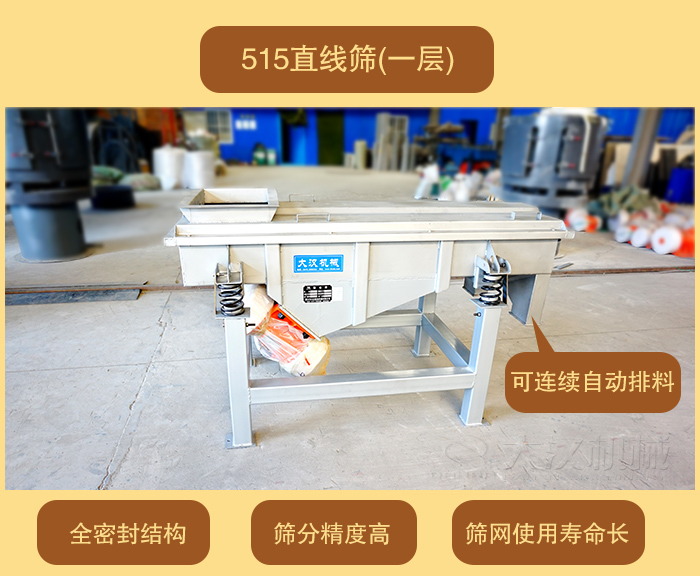 DZSF-515直線篩(寬)500mm×1500mm(長(zhǎng)),體積小移動(dòng)方便,價(jià)格便宜。大漢直線振動(dòng)篩廠家可為客戶(hù)量身定做特殊要求的直線振動(dòng)篩(單層或多層)。515直線振動(dòng)篩按材質(zhì)分為304不銹鋼材質(zhì)和碳鋼材質(zhì)。