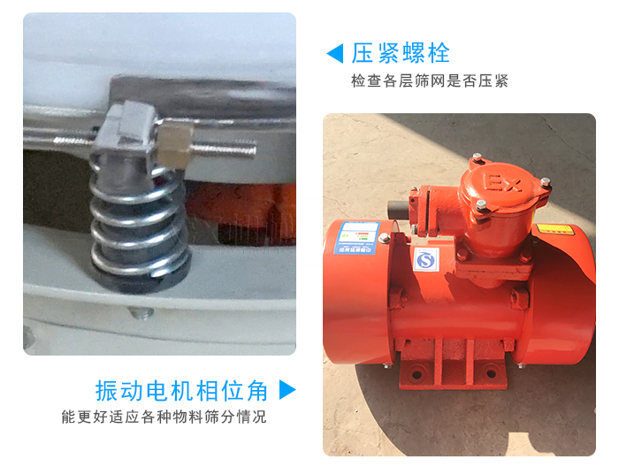 ⑸調(diào)節(jié)振動電機上下偏心塊的相位角,以適應(yīng)各種物料篩分情況。